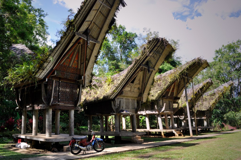 On every occasion I am ready for a Funeral – Tanah Toraja (Torajaland) is een prachtige, afgelegen bergregio in centraal Sulawesi waar de animistische Torajastammen er al eeuwenlang een unieke dodencultus op nahouden. Wanneer iemand er sterft is die in hun geloof nog niet dood. De overledene wordt jarenlang thuis opgebaard tot wanneer er voldoende geld is gespaard voor een passende begrafenis. In sommige huizen ligt ‘de dode’ in een bed, in andere zit die in een schommelstoel op de veranda. Een Toraja begrafenis meemaken is iets wat je nooit vergeet. De indrukwekkende ceremonies duren verschillende dagen, er komen tientallen familieleden van over de hele wereld op af en het gaat er vooral heel bloederig aan toe. Buffels worden ritueel geofferd, gewoon in het openbaar, er wordt gefeest en gedronken. Hoe meer buffels, hoe meer aanzien en een begrafenis waarbij tientallen buffels worden geslacht is geen uitzondering. Enkel wie een sterke maag heeft houdt het er langer dan een uur vol. Torajaland is mede hierdoor één van de meest onvergetelijke reiservaringen ooit.